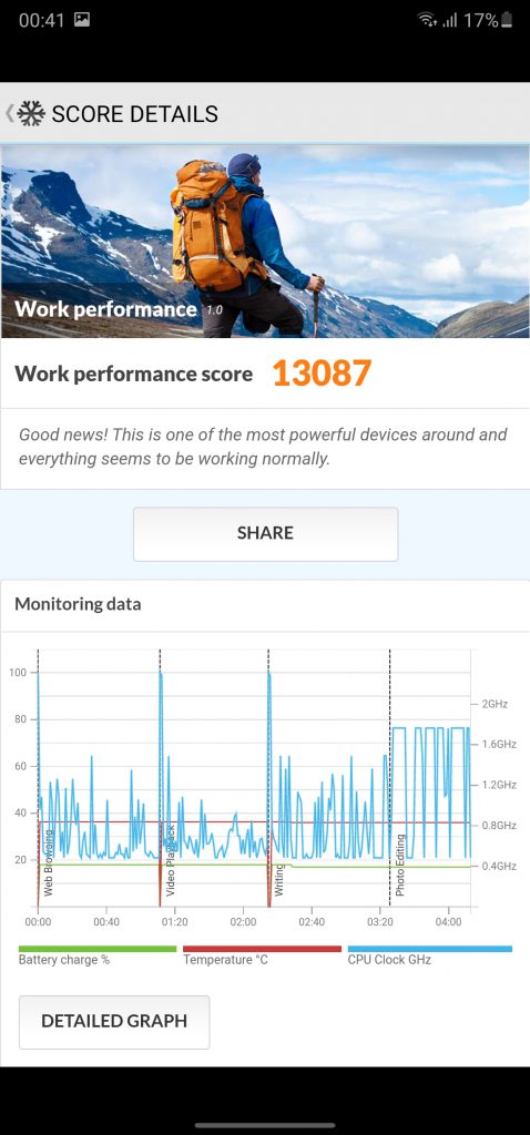 عملکرد نه چندان قابل قبول باتری نه تنها در بنچمارک، بلکه در استفاده ما در طول بررسی هم تأثیر خود را نشان می‌داد. در روزهای شلوغ و زمانیکه از مشغول استفاده از دوربین گوشی یا بازی با آن بودیم، با چشم خود به شکل محسوسی شاهد کم شدن میزان شارژ گوشی بودیم. البته باید اعتراف کنیم در معدود دفعاتی که تنظیمات گوشی بر روی حالت بهینه قرار داشت، خالی شدن باتری آنقدرها هم چشمگیر نبود. اما به عقیده من، زمانیکه چنین رقم بالایی برای خرید گوشی پرداخت می‌شود، استفاده از حداکثر توان آن، حق طبیعی کاربر است و در این شرایط باتری نوت 20 اولترا چنگی به دل نمی‌زند.