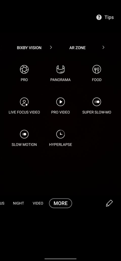 در صفحه اصلی نرم‌افزار دوربین سه حالت برای عکاسی در نظر گرفته شده است؛ 0.5x (فوق عریض)، 1x (اصلی 108 مگاپیکسلی) و 5x (تله‌فوتو). اما در زمان سوئیچ بین این سنسورها به بزرگنمایی‌های دیگر برمی‌خورید که شامل 2x، 4x، 10x، 20x و 50x  می‌شود. سامسونگ در کنار نایت مد، حالت‌های متنوعی برای عکاسی و فیلمبرداری در نرم‌افزار این گوشی در نظر گرفته است. Live Focus حالتی است که در آن با استفاده از هوش مصنوعی، پس‌زمینه سوژه به شکل طبیعی تار می‌شود. حالت عکاسی Pro برای افرادی در نظر گرفته شده که علاقه دارند تا دستی با تغییرات تنظیمات عکس مورد رضایت خود را ثبت کنند. Food برای عکاسی از غذا و پانوراما برای عکاسی در وسعت بالا استفاده می‌شود.