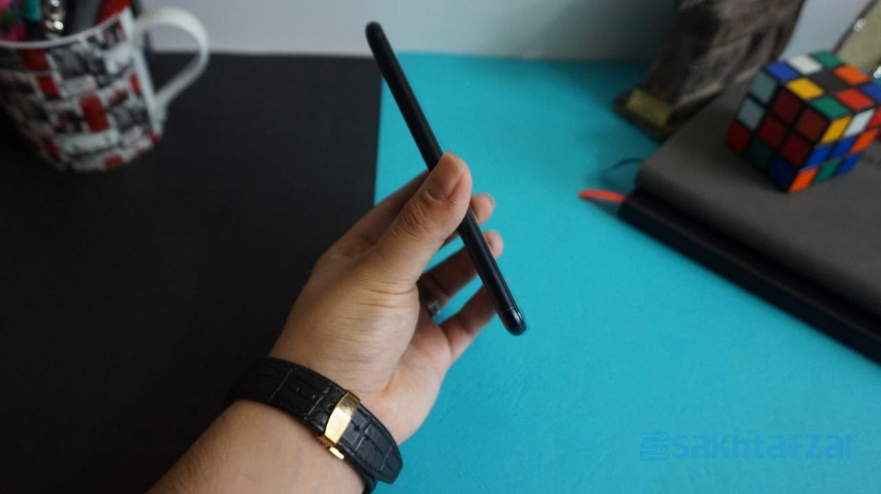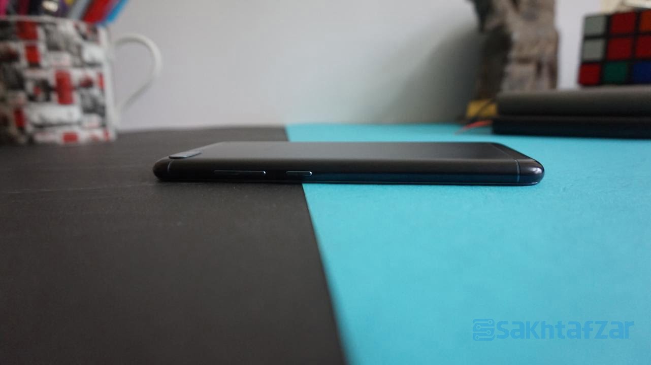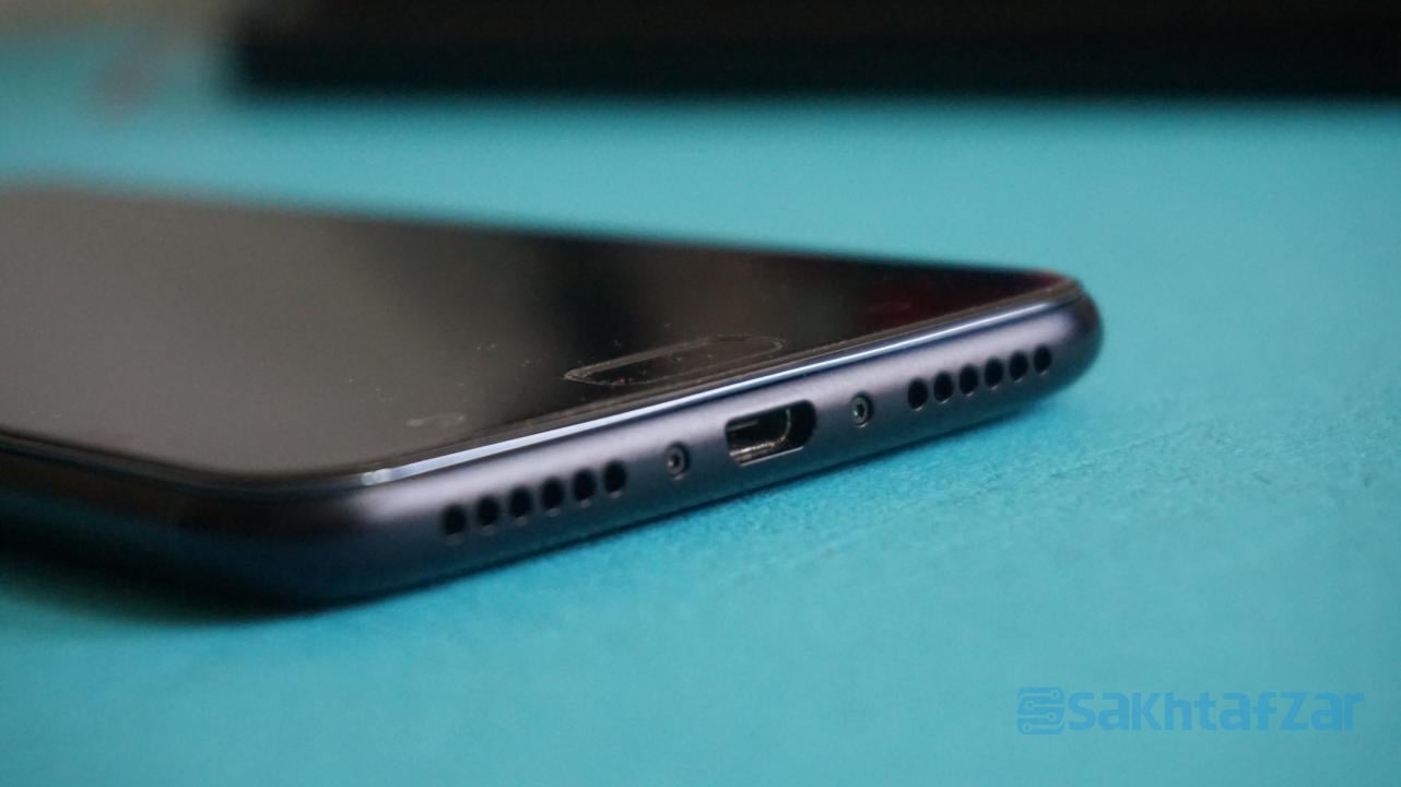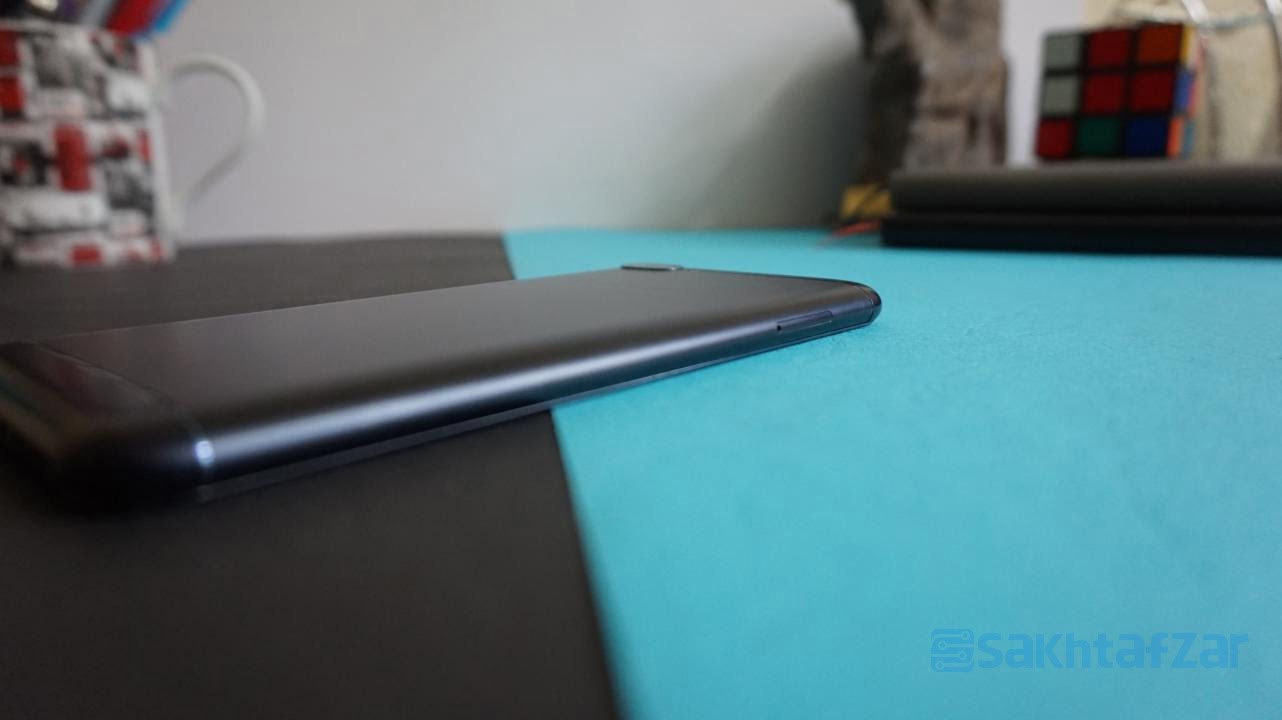 در لبه بالایی بدنه پورت 3.5 میلیمتری و در لبه پایینی هم گریل بلندگو در کنار ورودی microUSB دیده می شوند. در این بخش تنها یکی از دو گریلی که در لبه پایینی قرار دارند مربوط به بلندگو است و دیگری با هدف متفاوتی از جمله ایجاد تقارن در طراحی در این قسمت تعبیه شده.