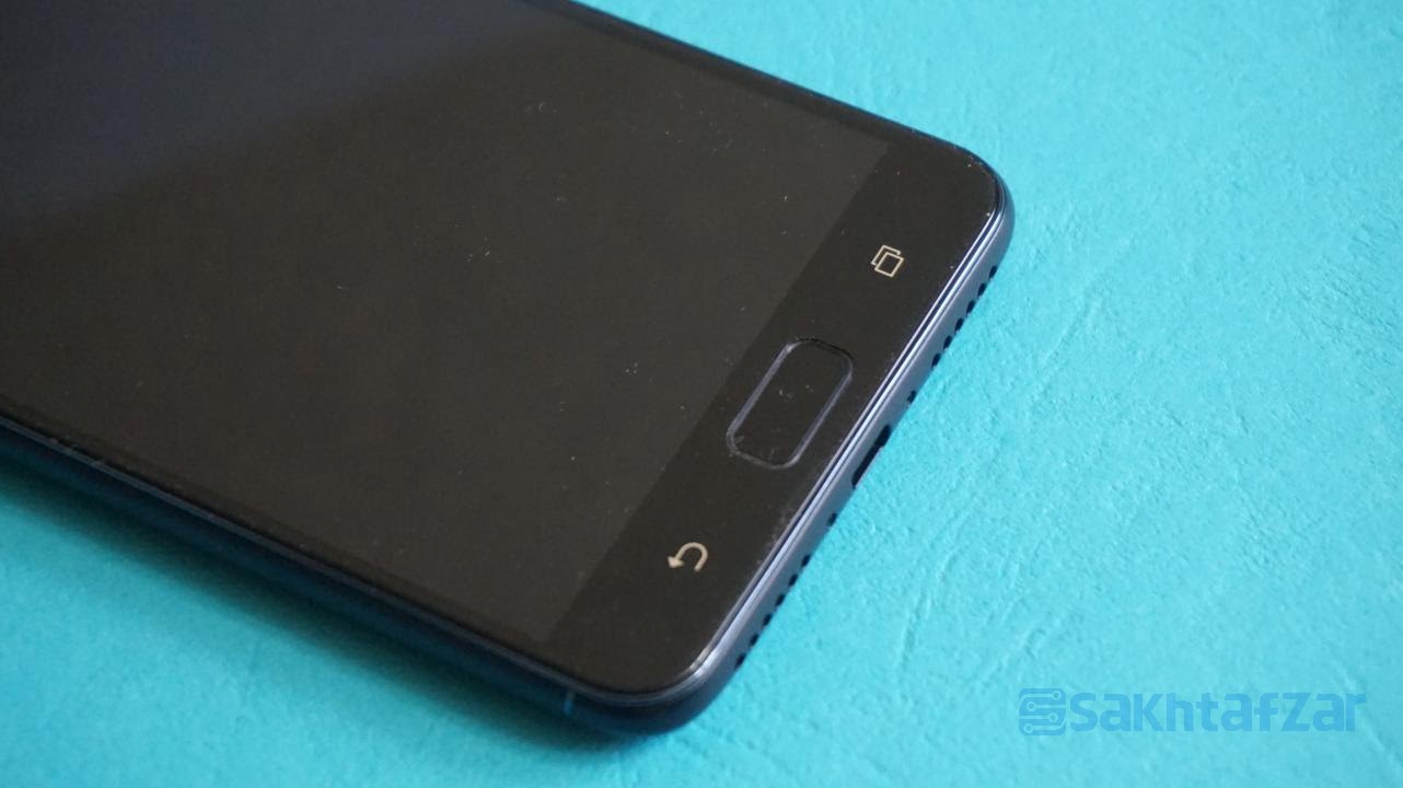 در بدنه جلویی شاهد قرار گرفتن کلید های حرکتی در بخش پایینی و دوربین سلفی، فلش دوربین جلو، گریل بلندگو و یک چراغ LED در گوشه سمت چپ در بخش بالا هستیم. کلیدها همگی از نوع لمسی بوده و مورد مرکزی آن نقش سنسور اثر انگشت دستگاه را نیز بازی می کند. این حسگر دارای دقت مناسبی است و سرعت تشخیص و عملکرد آن کاملا مناسب ارزیابی می شود. نکته جالب درباره سنسور اثر انگشت و عملکردش به عنوان کلید Home  آن است که ایسوس تلاش کرده همانند اپل، یک فیدبک لرزشی نیز طراحی کند که با وجود تفاوت بسیار زیاد آن با موتورهای Taptic اپل، برای تشخیص محل قرار گرفتن کلید فیزیکی بدون نگاه کردن به گوشی و همچنین اطمینان از تشخیص دستورات کاربردی به نظر می رسد.
