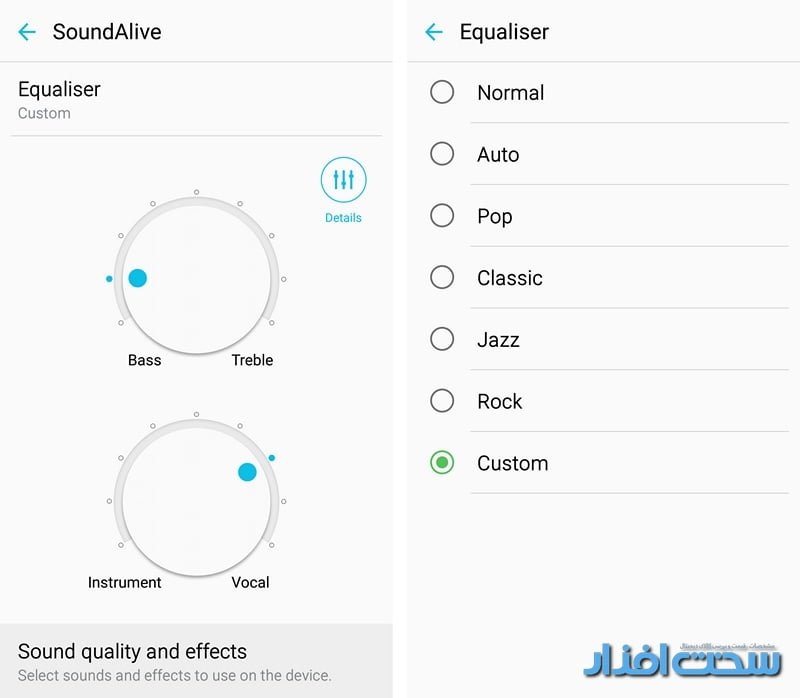 بلندگوی مونوی اصلی در نسخه پیشین A7 در پشت گوشی و کنار دوربین قرار داشت و فارغ از اینکه مکان غیر متعارفی برای استقرار بلندگو است، مناسب هم نبوده و با قرار گیری گوشی بر پشت سبب بلوکه شدن و تغییر اصوات می شود (تصور کنید بخواهید آهنگ در حال پخش را عقب و جلو نموده، تغییر دهید و یا در میان لیست آهنگ ها به جستجو بپردازید، در حالی که گوشی را برای پخش در کنار خود گذاشته اید). خوشبختانه در نسخه 2016 گلکسی A7 بلندگو به کناره پایین منتقل شده است. کیفیت، تفکیک و بلندی اصوات قابل قبول بوده و برای یک بلندگوی موبایل پذیرفتنی است. متاسفانه دستگاه تستی که برای ما ارسال شد را هندزفری همراهی نمی کرد، در نتیجه نمی توانیم نظری درباره کیفیت آن بدهیم. اما اگر یک هدفون با کیفیت مناسب را به جک 3.5 میلی متری متصل کنید، از حجم صدایی که به گوشتان می رسد خوشحال خواهید شد! کیفیت پخش اصوات خوب بوده و مجموعه ای از اکوالایزرها تجربه شنیداری را بهبود می بخشند. در بخش SoundAlive از اپلیکیشن موسیقی علاوه بر تغییر اکوالایزرها، می توانید حجم صدای بم (Base)، زیر (Treble)، شدت صدای خواننده یا ادوات موسیقی و برخی موارد دیگر را به دلخواه تنظیم کنید.