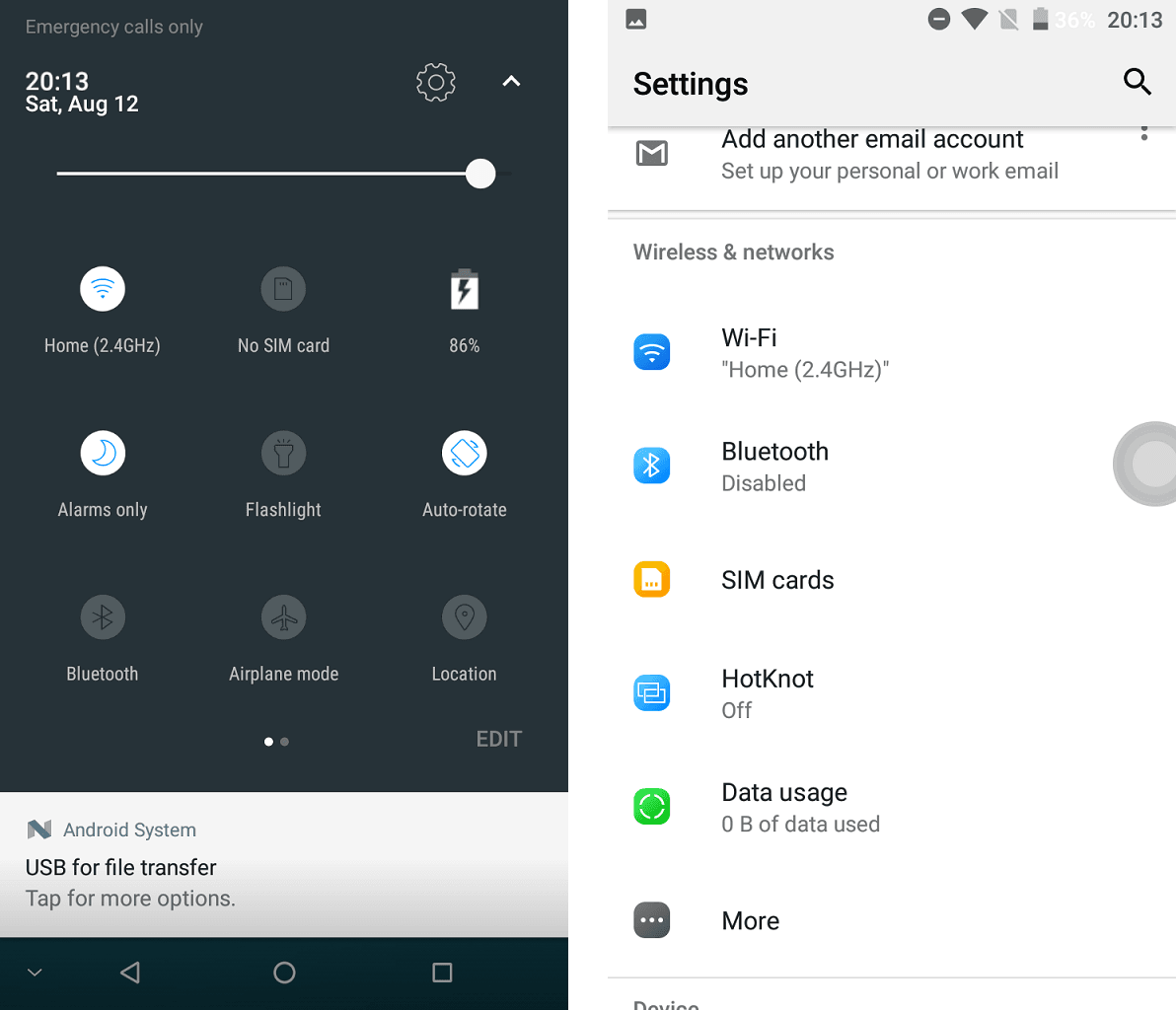 منوی تنظیمات شباهت زیادی به گوشی های سامسونگ دارد اما در کل نحو قرار دادن آیکون ها و دسترسی به امکانات خوب است و مورد خاصی دیده نمیشود.بخش مدیریت تماس، پیغام و شماره تماس ها تفاوت خاصی با دیگر محصولات موجود در بازار ندارد. منوی میابنر موجود برای تنظیمات سریع با اسلاید از سمت بالا به پایین در دسترس است. که در این بخش علاوه بر امکان تنظیم نور، موارد دیگری مانند چراغ قوه، فعال کردن Hotspot و قابلیت محافظت از چشم هم دیده می شود (البته موارد دیگری هم در این بخش دیده میشود که به علت مشترک بودن از گفتن آنها صرف نظر کردیم).