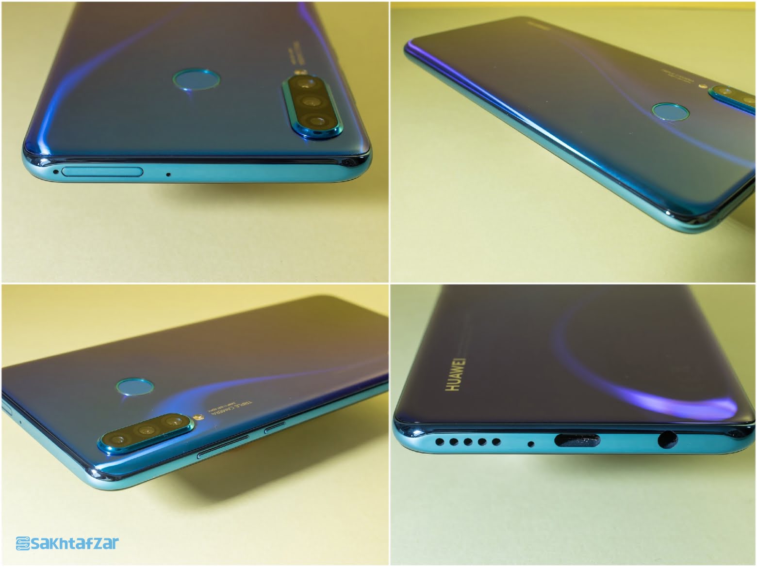 به‌جز زیبایی P30 lite گوشی خوش‌دستی نیز هست، چرا که نسبت به دو برادر بزرگتر خود ابعاد کوچکتر و وزن کمتری دارد. ابعاد 152.9×72.7×7.4 میلیمتری این گوشی جای‌گیری آن در دست را بسیار آسان کرده و وزن 159 گرمی این گوشی باعث شده تا در هنگام استفاده طولانی مدت از آن کمتر دچار خستگی شوید. البته تمامی مشخصات طراحی این گوشی برابر یا بهتر از دو عضو دیگر خانواده P30 نیست. چرا که جهت صرفه‌جویی در قیمت و کاهش وزن کلیدهای پاور و تنظیم صدا از جنس پلاستیک ساخته شده‌اند. این کلیدها در لبه سمت راست گوشی قرار گرفته‌اند. در لبه بالایی هم تنها شیار سیم‌کارت‌ها و کارت حافظه در کنار میکروفون حذف نویز جای گرفته است. لبه پایینی که همیشه شلوغ‌ترین قسمت فریم دور گوشی است، در پی30 لایت هم میزبان بلندگوی اصلی، میکروفون مکالمه، پورت USB-C نسخه 2.0 و جک 3.5 میلیمتری هدفون است. لبه‌های بالا و پایین گوشی کمی تخت طراحی شده‌اند و به همین دلیل شیارهای نوار آنتن را نه در این قسمت‌ها و نه در حاشیه کاملاً خالی سمت چپ و نه در هیچ قسمت دیگری مشاهده می‌کنیم.