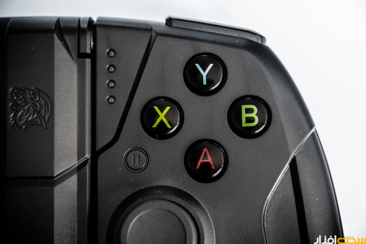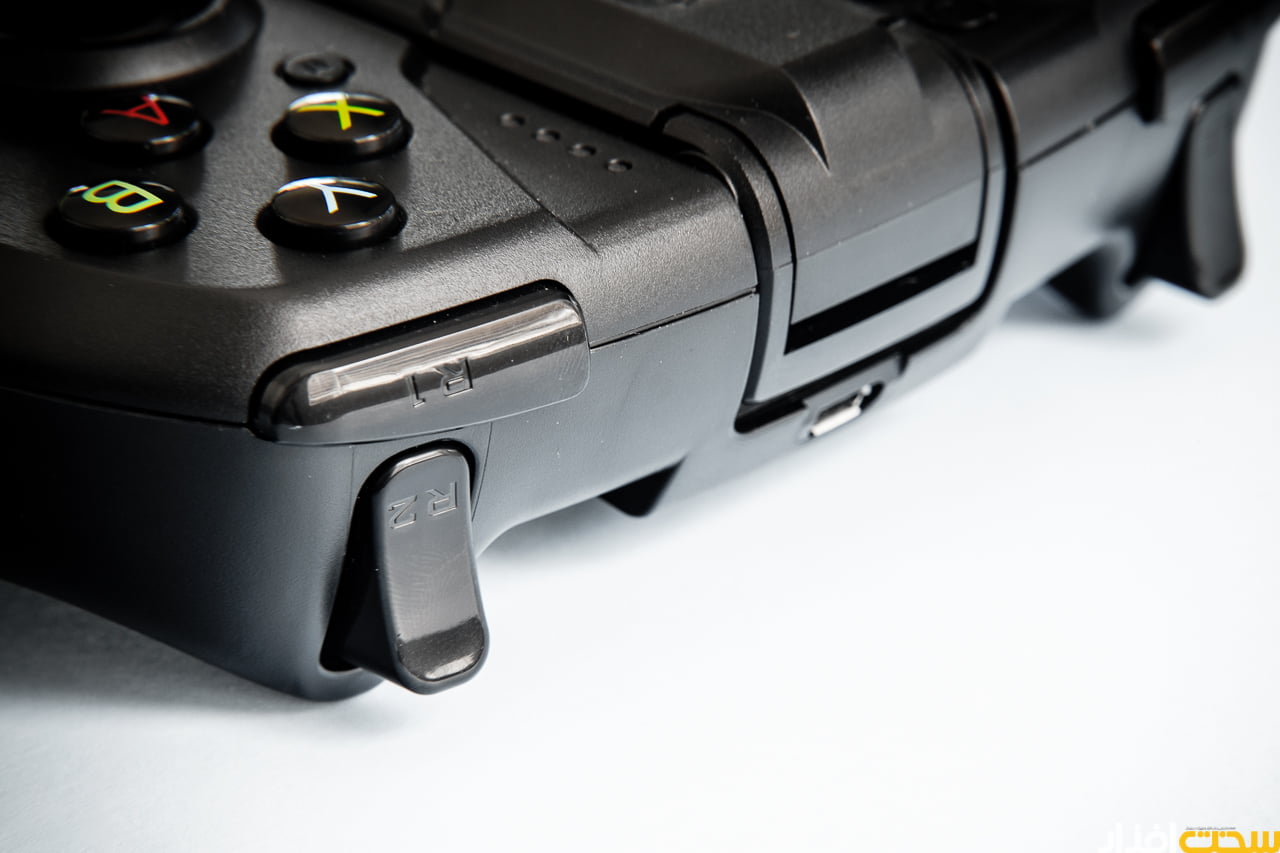 دکمه های جلوی گیم پد و اتصال microUSB برای شارژ باتری داخلی