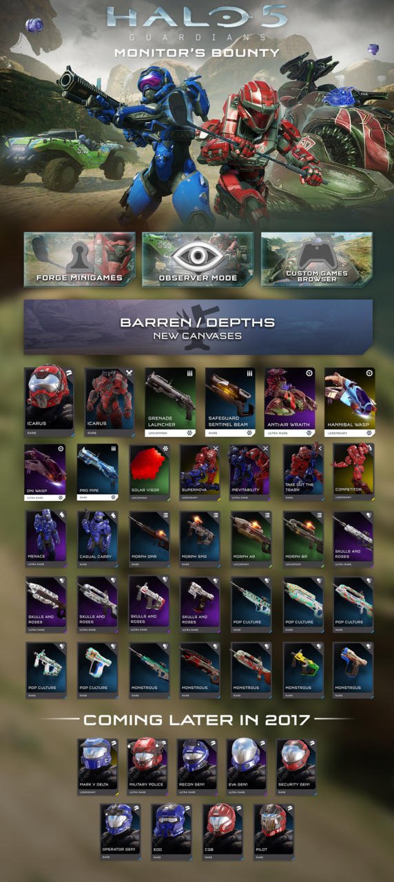 استودیو 343 Industries امروز به صورت رسمی جزئیات بسته الحاقی بعدی بازی Halo 5: Guardians اعلام نمود . این بسته الحاقی Monitor’s Bounty نام دارد و شامل نقشه ها ، سلاح های جدید مانند پرتاب نارنجک از Halo: Reach و game browser می باشد .