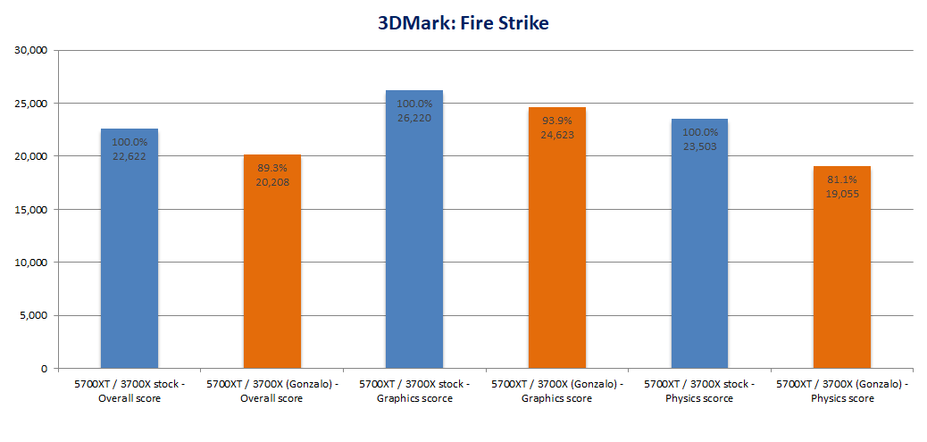 در ابتدا، این داده ها تنها بر اساس گفته های منابعی بود که به دنبال تحقیق در مورد Gonzalo رفته بودند؛ حالا این داستان با انتشار بنچمارک های جدیدی، شکل دیگری به خود گرفته است. تمامی بنچمارک هایی که در ادامه مشاهده می کنید، ثابت می کنند که Gonzalo یک APU بزرگ از نظر ابعاد است که قدرت آن قدرتی برابر با 85 الی 90 درصد یک کامپیوتر، با کارت گرافیک RX 5700XT و پردازنده Ryzen 7 3700X است. برای دریافت اطلاعات بیشتر می توانید به این مطلب مراجعه نمایید. توان حرارتی این تراشه باید چیزی در حدود 280 الی 290 وات باشد.