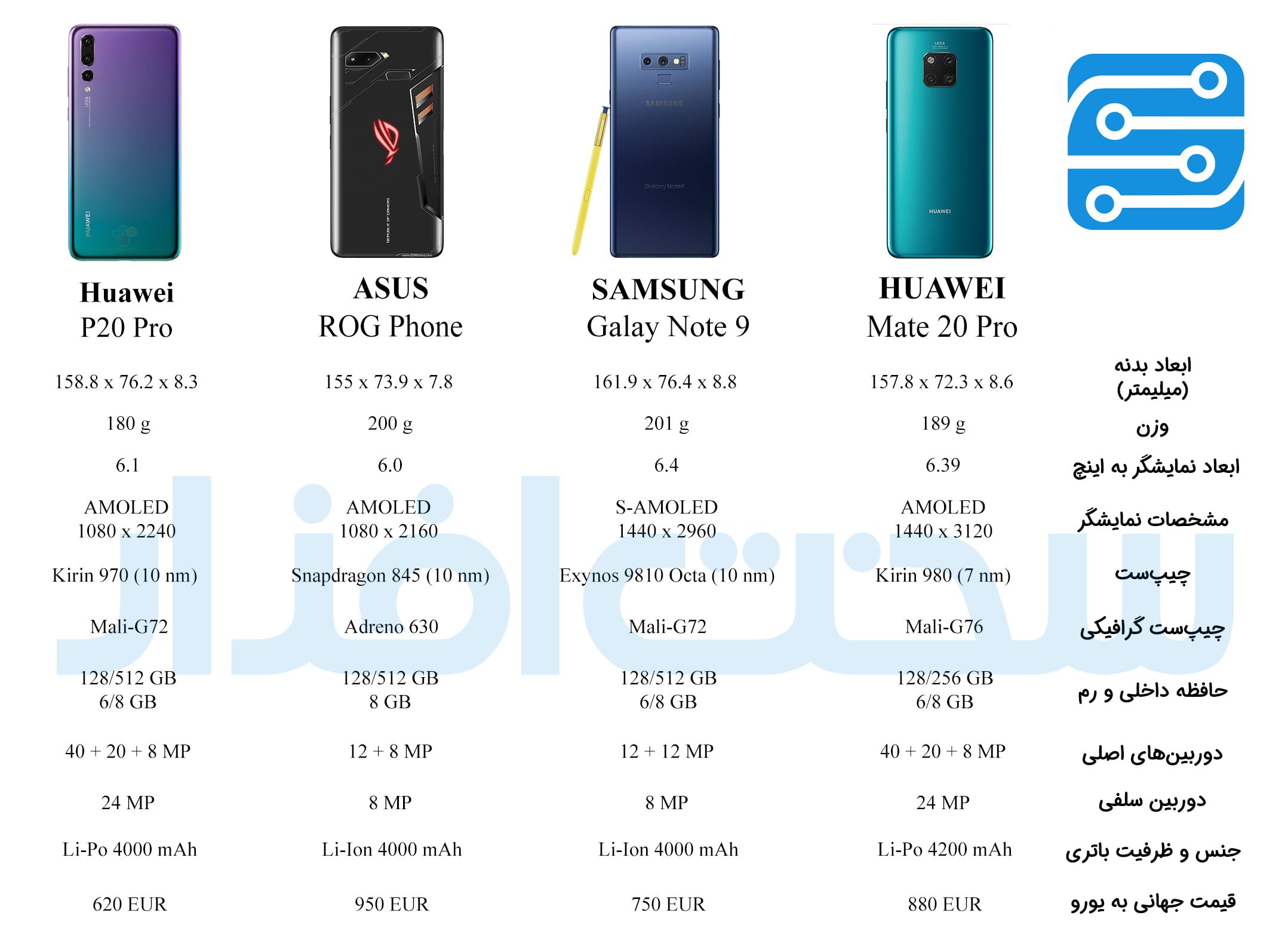 انتخاب بهترین گوشی سال 2018 از میان این چهار گوشی خواهد بود. در تصویر پایین می‌توانید نگاهی به مشخصات کلی این گوشی‌ها بیندازید و پس از آن انتخاب کنید بهترین کدام است.