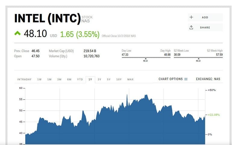 این شرکت با اعلام زمانبندی عرضه CPUهای 10 نانومتری، ارزش سهام خود را تا 5% افزایش داد! اما افزایش ارزش سهام Intel با سقوط سهام AMD تا 3.6% همراه بود. چیزی مشابه یک ترازو! به هر حال اینتل خود هم از این وضعیت خسته شده و ظاهرا جوش آورده است.