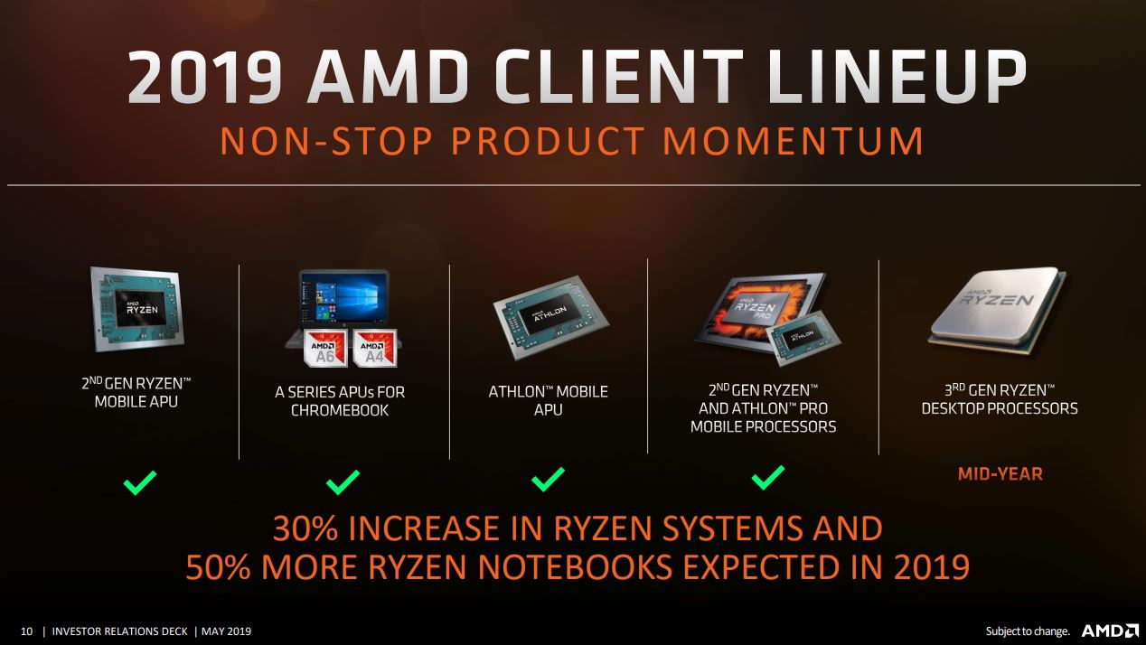شرکت AMD در معرفی پردازنده و کارت گرافیک هایی با لیتوگرافی 7 نانومتری، کمی با تاخیر مواجه شده است. قرار بر این بود که این پلتفرم ها شامل ZEN2 و NAVI در اوایل سال 2019 رونمایی شوند که با مشکلات فنی پیش آمده، این معرفی با تعویق روبرو بود. اما ای ام دی وعده داده است که در کامپیوتکس 2019 از پردازنده های Ryzen 3000 پرده برداری کرده و احتمالا در E3 2019 هم کارت گرافیک های 7 نانومتری NAVI رونمایی خواهند شد.