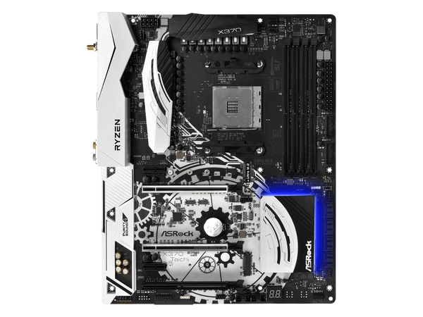 این محصول جدید و برترین مادربرد مبتنی بر سوکت AM4 است که به تازگی رونمایی شده است. هر چند که در جریان نمایشگاه CES 2017 نیز این مادربرد مشاهده گشت، اما اطلاعات چندانی از آن در اختیار رسانه ها قرار نداشت. X370 Taichi در زمینه رنگ آمیزی، تم و کلاس عملکرد، مشابه با نسخه X99 Taichi و Z270 Taichi است. این مادربرد با استفاده از سوکت AM4 و برترین چیپست AMD یعنی X370، میزبان پردازنده های Ryzen است که در حال حاضر مدل های 8 هسته ای از آنها معرفی شده است. یک مدار تغذیه 16 فاز به همراه کنترلر دیجیتالی نیز برای آن در نظر گرفته شده است و این مادربرد دارای ویژگی اورکلاک است. با استفاده از فناوری Dual Band 802.11ac WiFi، این مادربرد بدون نیاز به ماژول مجزا به شبکه های وای فای در دو باند 2.4 Ghz و 5.0 Ghz متصل می گردد. همچنین این مادربرد به بلوتوث نسخه 4.2 نیز مجهز است. این مادربرد به رابط های USB 3.1 Type-A Port (10 Gb/s) و USB 3.1 Type-C Port (10 Gb/s) نیز مجهز شده است. مدار تغذیه توسط خنک کننده ی XXL Aluminum Alloy Heatsink تهویه می گردد. ازراک از چوک های Premium 60A Power و Premium Memory Alloy در کنار خازن های Dual-Stack MOSFET (DSM) استفاده کرده است. از جمله دیگر خازن های به کار رفته در تولید این محصول می توان به Nichicon 12K Black Caps اشاره کرد.