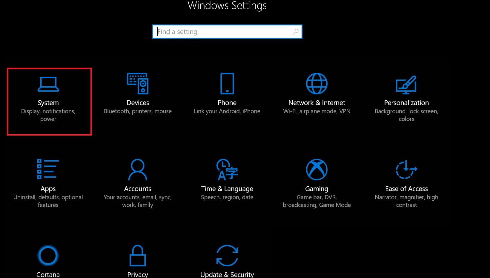 در این قسمت باید روی اولین گزینه یعنی System کلیک کنید تا تنظیمات سیستمی نمایش داده شوند.