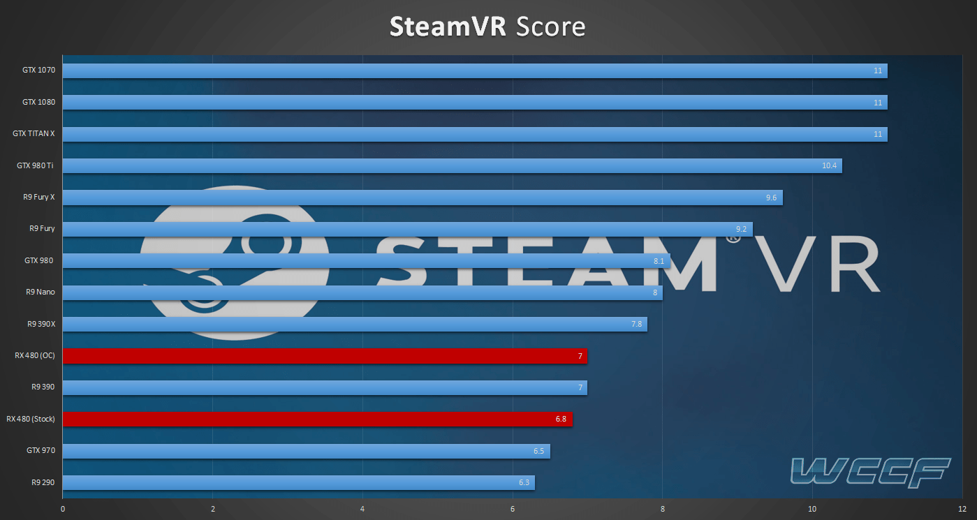 سیستم من با کارت 970 جی1 تو تست vr steam امتیاز 7.2 گرفته. کارت evga 970 ftw هم امتیاز 7 به دست آورده. پس اکثر کارت های 970 با کمی اورکلاک نسبت به مدل رفرنس به راحتی امتیاز 6.8 رو میتونن به دست بیارن.