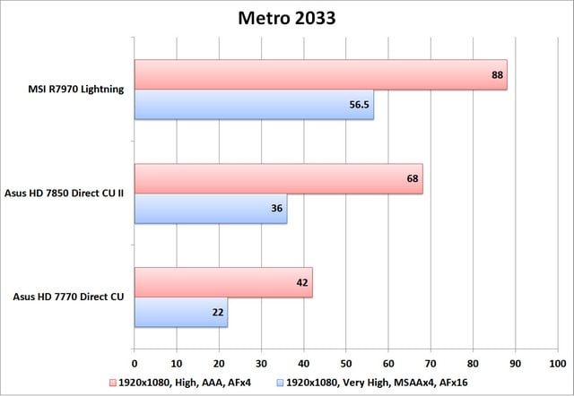برای بررسی کارایی این مجموعه از کارت های گرافیک، به سراغ سیستم تست همیشگی رفتیم که شامل پردازنده Intel Core i5 2500K، هشت گیگابایت حافظه Zeppelin DDR3-1600، درایو ADATA S592 32GB، هارددیسک Seagate 7200.11 500GB و منبع تغذیه Green GP1235B رفتیم. همچنین در این تست از سیستم عامل Windows 7 64bit SP1 و درایور کارت گرافیک Catalyst 12.4 استفاده شد.