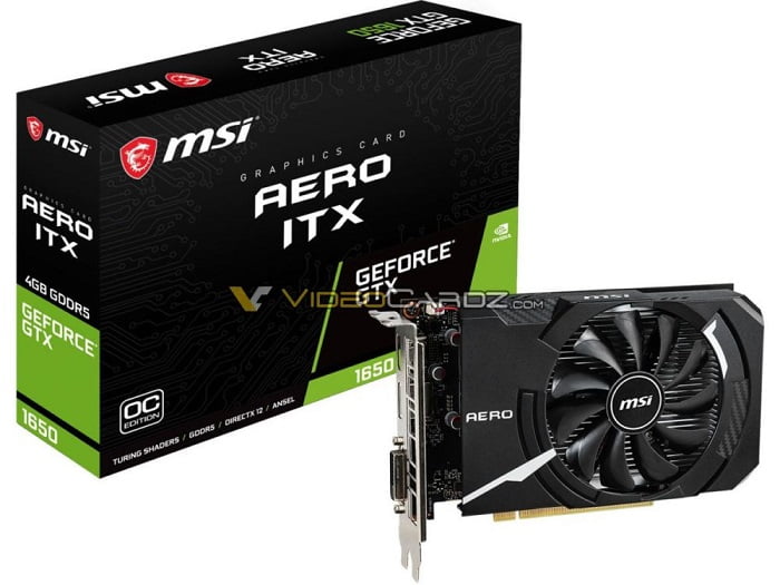کارت گرافیک های شرکت MSI نیز در چند نمونه با عناوین MSI GTX 1650 4GB GAMING X که از فرکانس نامشخص بهره می برد، MSI GTX 1650 AERO ITX OC به عنوان کوچکترین عضو خانواده و MSI GTX 1650 VENTUS XS OC معرفی خواهند شد. در ادامه شاهد تصاویر آنها خواهیم بود.