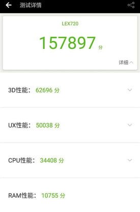 در تصویر بعد، شاهد اطلاعات فنی Le 2S Pro در برنامه ی CPU-Z هستیم که مدل LEX720 را به نشان میدهد. در قسمت پردازنده، کد MSM8996 درج شده است که نشان دهنده ی چیپست اسنپدراگون 820 کوالکام است در حالی که با توجه به گزارشات انتظار میرفت این گوشی با پردازنده ی اسنپدراگون 821 رونمایی شود. از دیگر مشخصاتی که از داخل این اسکرین شات میتوان ذکر کرد، وجود صفحه نمایش 5.5 اینچی با رزولوشن فول اچ دی و 4 گیگابایت حافظه ی رم است. حافظه ی داخلی دستگاه نیز انتظار میرود 32 گیگابایت باشد در حالی که در این تصویر مقدار فضای داخلی 19.91 گیگابایت ذکر شده است که احتمالا به این دلیل است که با یک نمونه ی اولیه روبرو هستیم. اما تصویر امتیاز بنچمارک این گوشی نیز در AnTuTu نیز ثبت شده است که نشانگر امتیاز بسیار بالای نزدیک به 158000 است. این مقدار امتیاز برای اسنپدراگون 820 کمی بالا به نظر میرسد و به همین دلیل هنوز امکان به کار گیری از اسنپدراگون 821 به همراه 8 گیگابایت رم در این مدل وجود دارد. در نهایت همان طور که گفته شد Le 2S Pro احتمالا در هفته ی اول ماه سپتامبر معرفی خواهد شد.