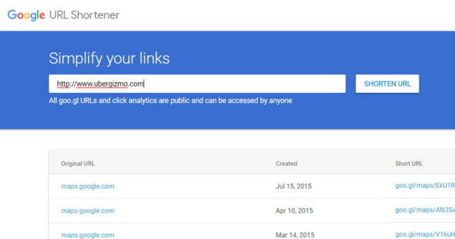 URL shorteners یک سرویس مفید و کاربردی بوده است. این سرویس در سال 2009 راه اندازی شد و گوگل در این سرویس به مختصر کردن لینک های طولانی برای راحتی کاربران در به اشتراک گذاشتن لینک ها و اندازه گیری ترافیک آنلاین کمک کرده است. این سرویس دارای قابلیت ایجاد API ثالث، کدهای QR و قدرت ساخت لینکی مناسب برای اندروید و iOS است. این سرویس در تاریخ 13 آوریل از سرویس Google URL Shortener به سرویس goo.gl تغییر خواهد کرد. سرویس goo.gl در واقع به همه ی کاربران در سیستم عامل های مختلف اعم از iOS و اندروید امکان دسترسی و ارسال لینک ها را می دهد.