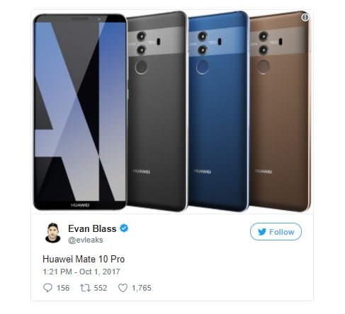 گوشی های سری میت 10 در اواخر مهرماه معرفی می شوند. ایوان بلس امروز تصویر جدیدی از گرانقیمت ترین مدل این گوشی منتشر کرد، که نشان میدهد میت 10 پرو، با 3 دوربین (2 تا در عقب و یکی در جلو) عرضه خواهد شد. این تصاویر تأکید ویژه ای هم به قابلیت هوش مصنوعی (AI) به کار رفته در این گوشی دارد.