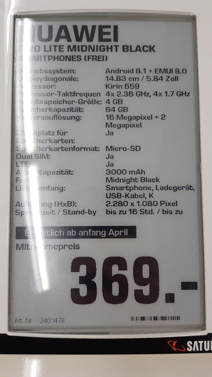 هواوی فردا، 7 فروردین از پرچمداران جدید سری P با نام پی20 در رویدادی در پاریس رونمایی خواهد کرد، حالا به نظر میرسد که منظور هواوی از “See Mooore” قیمت بیشتر است! امروز تصویری از مشخصات و قیمت این گوشی ها در یک مغازه خرده فروشی آلمان منتشر شده است.