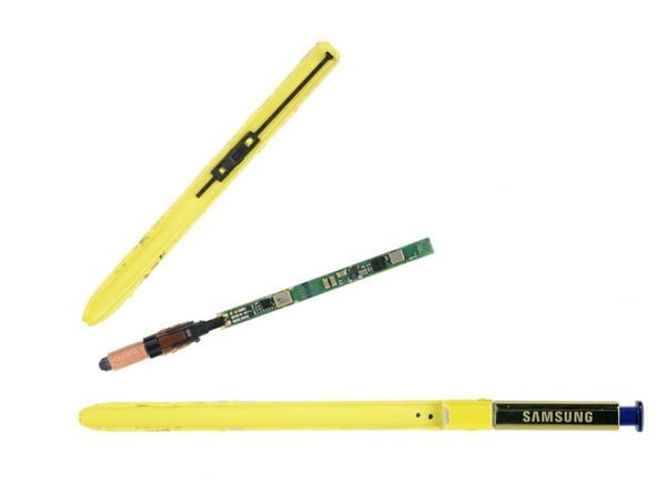 بزرگترین پیشرفتی که سامسونگ در گلکسی نوت 9 اعمال کرده است، قلم S-Pen مجهز به بلوتوث این گوشی است. iFixit به این موضوع اشاره می کند که قلم مانند “موز” باز می شود. البته متاسفانه راهی وجود نداشت که بدون شکستن قاب رویی این قلم باز شود، اما حداقل این قسمت از گوشی به نظر چسبنده نمی آمد. علاوه بر این iFixit به جای مناسب اسکنر اثر انگشت و پخش کننده گرما و سطح بزرگ آن نیز به عنوان نکات مثبت اشاره کرده است.