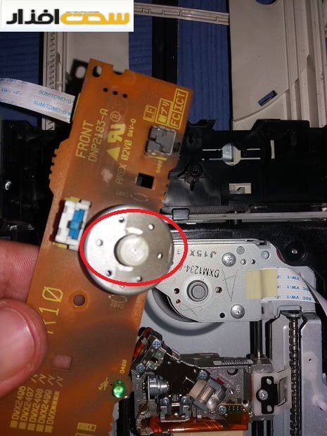 بر روی موتور یک چرخ دنده کوچک قرار گرفته است.به وسیله پنبه و الکل،دور آن را به خوبی تمیز نمایید چرا که در بسیاری از مواقع،چرب شدن آن موجب درجا زدن تسمه می گردد.همانطور که در تصویر نیز قابل مشاهده است،این قسمت همواره در معرض گرد و غبار قرار دارد پس نسبت به تمیز کردن آن نیز اقدام نمایید.