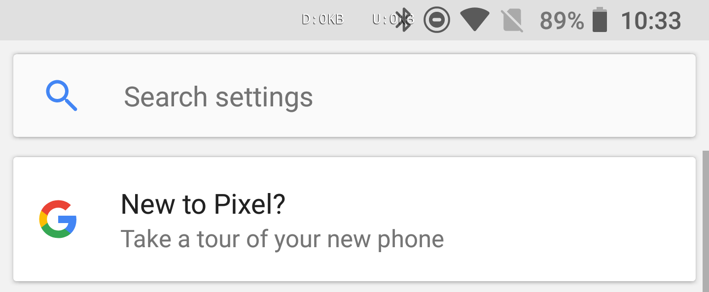 در اندروید 8.1 یک نوار جستجو در بالای منوی تنظیمات اضافه شده است که به کاربران اجازه دسترسی آسان تر به تنظیمات را میدهد.
