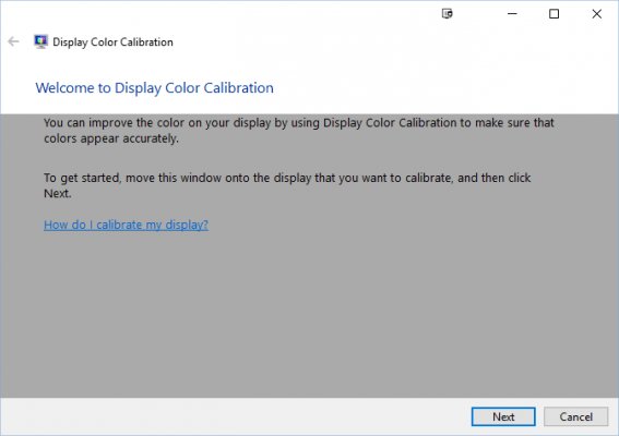 پس از آن صفحه ایی برای ما ظاهر می گردد که ضمن اعلام خوش آمد گویی به صفحه کالیبره رنگ،می تواند ما را با قابلیت های این بخش بیشتر آشنا سازد.از آنجایی که بسیار بعید است که ما به همچین گزینه ایی نیاز داشته باشیم،به سرعت بر روی گزینه Next در پایین صفحه کلیک می کنیم.