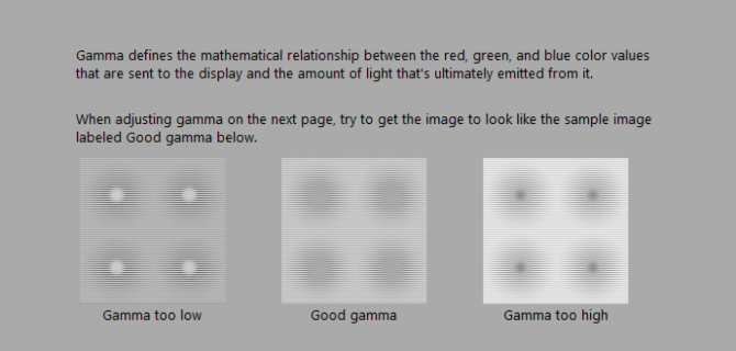 در مرحله اول از تنظیمات تخصصی تصویر،شما قادر به تنظیم گاما خواهید بود.Gamma نه فقط در مانیتورها،بلکه در تلویزیون و دیگر نمایشگرها نیز موجود است.گاما توانی است که در رابطه بین سطح سیگنال و روشنایی یک تصویر و یا کاملا بر عکس،روشنایی محیط و سطح سیگنال دریافتی توسط سنسورهای یک دوربین مورد استفاده قرار می گیرد.به طور کلی گاما یکی از مهمترین موارد در کالیبراسیون است که گاها توسط کمپانی ها با دقت خاصی انجام می پذیرد.دلایل تکنیکال خاصی برای اثبات متغییر گاما در ویندوزهای نسل جدید وجود ندارد.برای آشنایی بهتر با تنظیمات گاما و تاثیر آن در خروجی،می توانید با تغییر آن وضعیت مورد نظر را انتخاب نمایید.لازم به ذکر است که افزایش گاما سبب بالا رفتن مصرف انرژی و گاها عدم توازن بین بیت های روشن و خاموش می گردد.پس در این زمینه بسیار دقت نمایید.