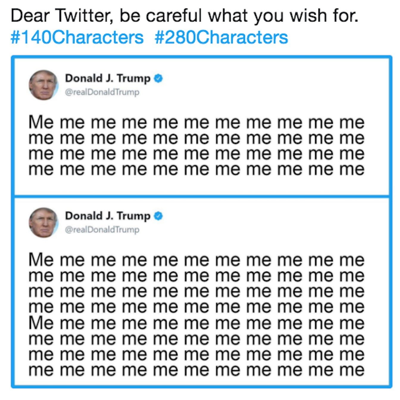 طبق اعلام وبلاگ رسمی توییتر، نتایج آزمایش افزایش محدودیت حجم توییت ها نشان می دهد که تعداد کاربران با توییت های انگلیسی زبانی که همچنان به محدودیت قبلی پایبند بودند از 9% به 1% کاهش یافته است و همینطور توییت هایی که با محدودیت حجم کاراکتری بالاتر نوشته و ارسال شده بودند از نظر تعداد لایک ها و ریتوییت ها و منشن ها دارای محبوبیت بیشتری بوده اند. البته همانطور که اشاره شد تمرکز این افزایش تعداد کاراکتر ها بیشتر متوجه کاربران با توییت های انگلیسی است و بهعنوان مثال کاربر های آسیای شرقی که به زبان های ژاپنی و کره ای و چینی توییت میکنند همچنان محدود به 140 کاراکتر در هر پست خواهند بود زیرا نسبت تعداد کاراکتر ها به کلمات در زبان های مذکور بسیار کمتر از دیگر زبان های رایج است.