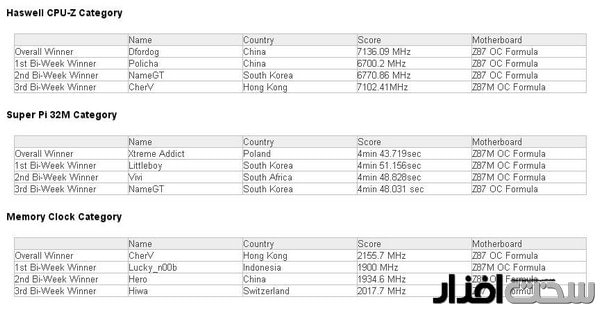 در ثبت این رکورد ها از مادربورد های ASRock Z87 OC Formula و Z87M OC Formula استفاده شده است که به طور خاص برای اورکلاک طراحی شده اند.