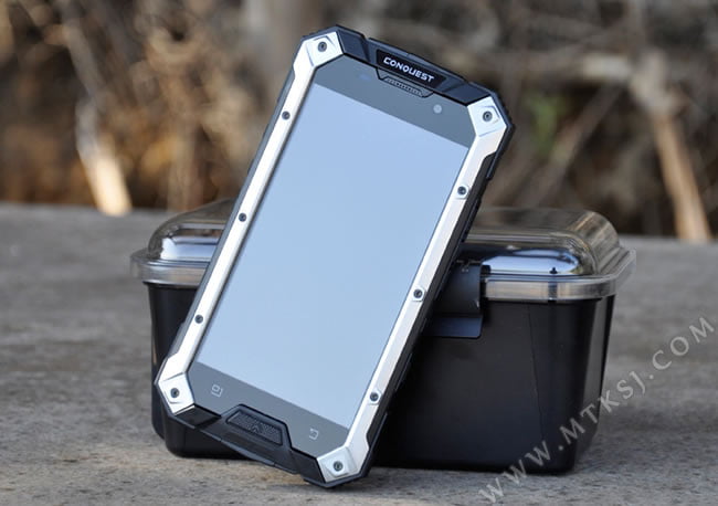 Conquest S6 مستقیم از چین می آید و بدنه بسیار مقاومی داشته و استاندارد IP68 را داراست. باتری این گوشی 290 گرمی 4000 میلی آمپر ساعت ظرفیت دارد و چیپ ست 64 بیتی و چهار هسته ای آن MediaTek MT6732 است که توسط 1 گیگابایت RAM همراهی می شود.