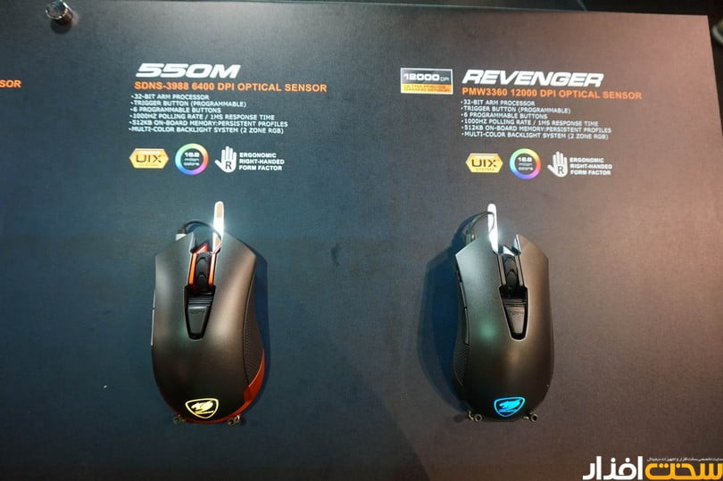ابتدا اجازه بدهید به گزارش های اختصاصی و پوشش های زنده بپردازیم. ماوس های گیمینگ در مدل های 300M، 450M، 550M، 600M و 700M که دارای حافظه داخلی 512 کیلوبایتی و پردازنده ARM است و همچنین مدل Revenger جزو تجهیزات بسیار زیبای Cougar در غرفه این کمپانی هستند. دو مدل هدست Immersa و Megara به همراه ست های ماوس و کیبورد Combo Gaming در مدل های Deathfire-EX و Deathfire، و صفحه کلیدهای مکانیکی 450K و Vantar و Ultimus با طراحی بسیار زیبا، نور پس زمینه و زمان پاسخگویی 1 میلی ثانیه جزو محصولات Cougar در غرفه خود هستند.