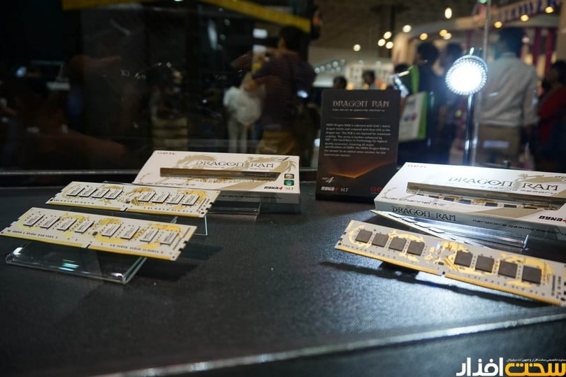 ماژول های Dragon از Geil با فرکانس حداکثری 3400 مگاهرتز و حداکثر ظرفیت 16 گیگابایتی و ظرفیت کیت 64 گیگابایتی جزو مواردی هستند که توسط این کمپانی نمایش داده شده اند. EVO-X یکی دیگر از برندهای Geil برای حافظه های RAM است که جایی در این غرفه داشته است. برنامه های اختصاصی که برای این ماژول ها طراحی شده به کاربران اجازه کنترل رنگ LED تعبیه شده بر روی آنها را به کاربران می دهد. ماژول های EVO FORZA و POTENZA و نیز پرچم دار حافظه های رم Geil یعنی Super Luce از دیگر تجهیزات این کمپانی هستند.