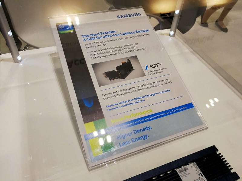 فناوری Z-NAND مابین DRAM و NAND قرار گرفته و یک تکامل آمیخته با طراحی مجدد از تراشه های NAND است. یک کنترلر جدید برای این منظور در نظر گرفته شده است که در حال حاضر اطلاعات چندانی از آن در دست نیست؛ با این وجود می دانیم که این کنترلر زمان تاخیر را 70% کمتر از سریع ترین مدل های NAND موجود در کلاس NVME کرده است. در تصاویر اولیه، حافظه های Z-SSD تولید کمپانی سامسونگ دیده می شوند که در ظرفیت 800 گیگابایت تولید شده اند. این محصولات از استاندارد NVME در اینترفیس PCI Express 3.0 X4 بهره برده و به سرعت 3200 مگابایت در ثانیه دست پیدا خواهند کرد. در حالت دستورات تصادفی بر اساس میزان دستورات ورودی/خروجی در هر ثانیه (4K) نیز ارقام 750K و 160K ثبت شده است. این درایوها به زودی در ظرفیت های 1، 2 و 4 ترابایت نیز راهی بازار خواهند شد. جنگ قدرت و سرعت میان اینتل و سامسونگ آغاز شده است؛ تا پایان سال 2017 منتظر ورود به یک دنیای جدید از ذخیره سازهای دیجیتال باشید!
