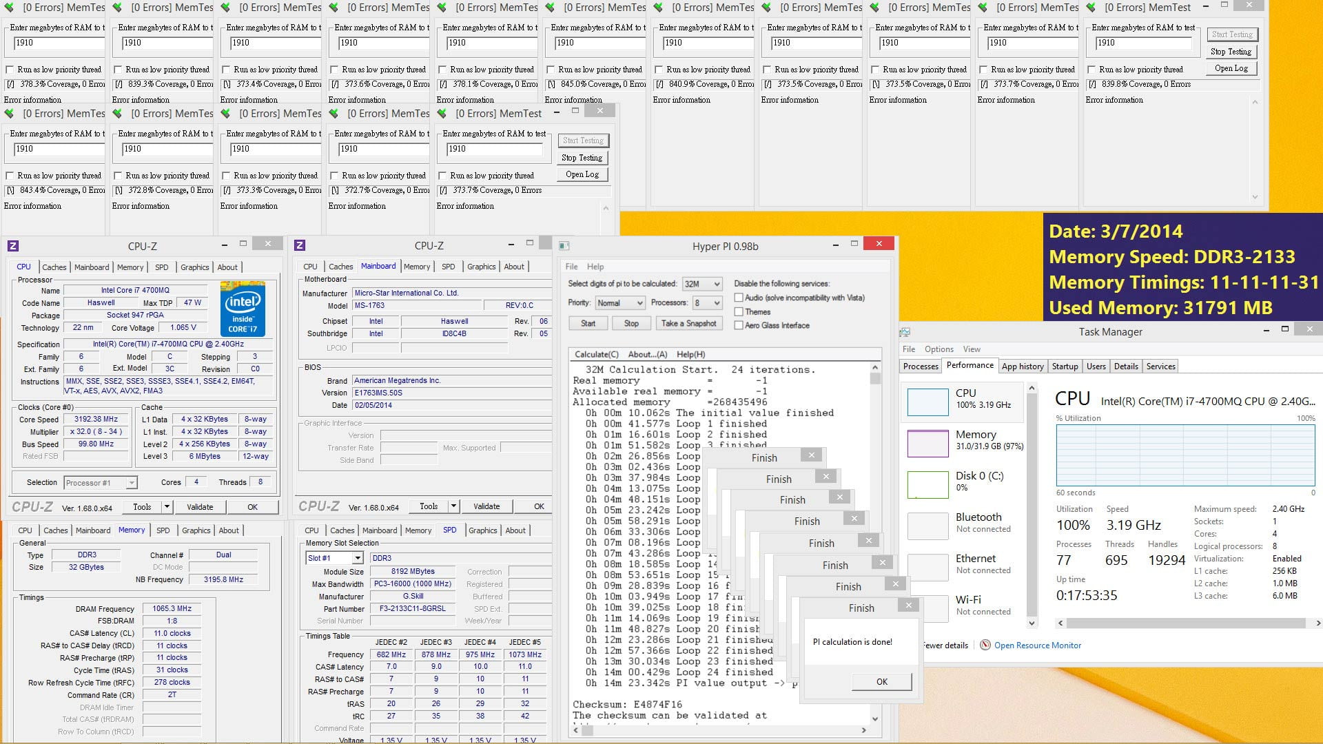 بله درست خواندید هیچ اشتباه تایپی هم وجود ندارد. این حافظه که متعلق به خانواده پرطرفدار Ripjaws به صورت 4 ماژول هشت گیگابایتی ارائه شده و در ولتاژ 1.35 ولت کار می کند. زمان تاخیر این حافظه 31-11-11-11 است که باعث ارائه کارایی بهتر در نوت بوک ها می شود. این حافظه برای تست روی یک نوت بوک MSI GT70 2OC نصب شده است که در ادامه نتیجه بعضی تست ها را در تصویر مشاهده می کنید.