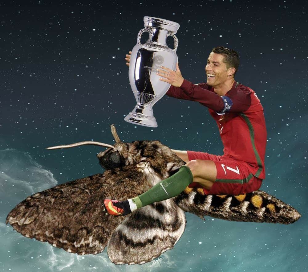 بعد از اتمام بازی و قهرمانی رونالدو در رقابت های یورو 2016 واکنش ها متفاوت شد.این بار کاربران رونالدویی را به تصویر کشاندند که سوار بر حشره در راه رسیدن به قهرمانی بود.