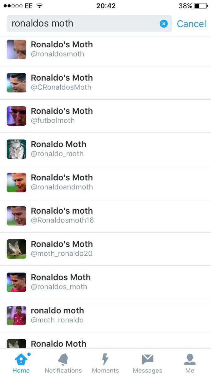 اما در این بین یکی از قضایایی که بعد از مصدومیت رونالدو و نشستن این حشره روی بینی او بود، ساخت یک اکانت توییتری با نام “پروانه رونالدو” بود. این اکانت در چند دقیقه اول حدود دو هزار دنبال کننده جذب کرد و تا زمان نوشتن این خبر بیش از چهار هزار دنبال کننده دارد.البته اکانت های دیگری با همین نام در توییتر ساخته شد ولی هیچکدام نتوانستند به پای این اکانت که سر و صدای زیادی به پا کرد برسند.