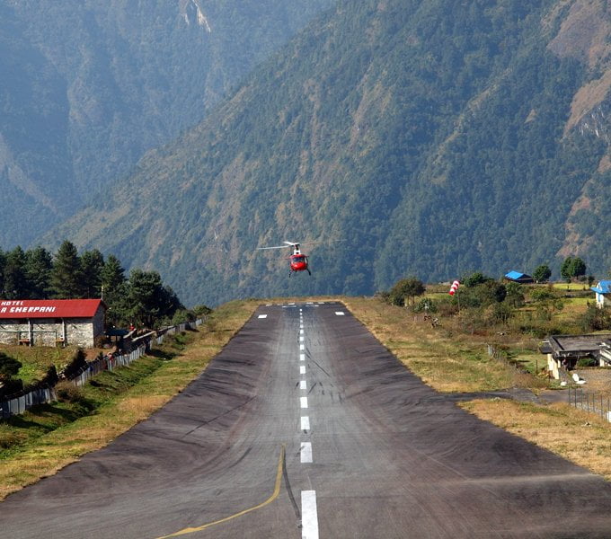 یک فرودگاه کوچک در شهر لوکلا که در ارتفاع 2800 متری  از سطح دریا واقع شده است. باند این فرودگاه 460 متر است. آنچه که این باند را واقعاً خطرناک میسازد، طول کم و بادهای شدیدی است که از همسایگی همیالیا می وزد. همین موضوع فرود مستقیم بر روی زمین را پیش از به اتمام رسیدن باند بسیار دشوار میکند.