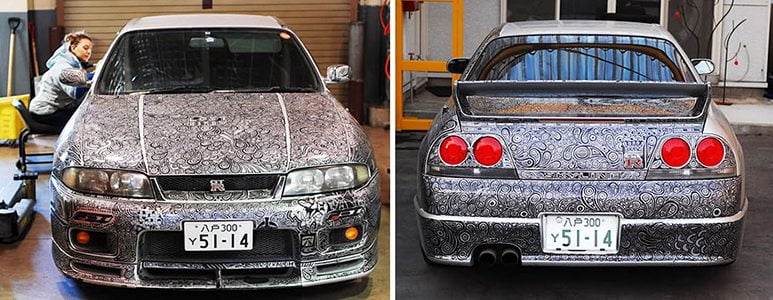 این بی نظیر است که یک هنرمند با یک ماژیک می تواند چه شاهکاری خلق کند. به این نیسان اسکای لاین GTR R33 نگاه کنید. تا قبل از این هنرنمایی، این ماشین فقط یک نیسان نقره ای رنگ معمولی بود، اما توسط دستان هنرمند یک خانم به این شکل درآمد. او این نیسان را به یک ماشین منحصر به فرد و کاملاً متفاوت نسبت به مابقی ماشین ها تبدیل کرد.