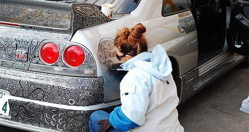 این بی نظیر است که یک هنرمند با یک ماژیک می تواند چه شاهکاری خلق کند. به این نیسان اسکای لاین GTR R33 نگاه کنید. تا قبل از این هنرنمایی، این ماشین فقط یک نیسان نقره ای رنگ معمولی بود، اما توسط دستان هنرمند یک خانم به این شکل درآمد. او این نیسان را به یک ماشین منحصر به فرد و کاملاً متفاوت نسبت به مابقی ماشین ها تبدیل کرد.