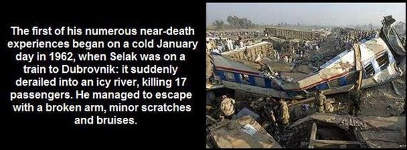 به نظر می رسد که این شخص در صدر جدول خوش شانس ترین افراد جهان قرار دارد. او از حوادثی همچون چپ شدن قطار، آتش گرفتن اتومبیل، تصادف های رانندگی و حتی سقوط از هواپیما جان سالم به در برده است.  با “فرین سلاک”(Frane Selak ) آشنا شوید. آقای سلاک استاد موسیقی در کشور کرواسی است.در سال 1962 میلادی، او سوار بر یک قطار از شهر “سارایوو” به سمت “دوبروونیک” در حال حرکت بود که به دلایلی که هرگز مشخص نشد، قطار از ریل خارج شده به درون دریاچه ای یخ زده چپ می شود. در این حادثه 17 نفر جان خود را از دست دادند ولی سلاک زنده ماند. او در این حادثه تنها دستش شکست و بدنش نیز یخ زدگی و کبودی جزئی برداشت.  پس از گذشت یک سال، در سفری هوایی از شهر “زاگرب” به سمت “رییکا”، درب هواپیمایی که او در آن قرار داشت از جا کنده می شود و تمامی 20 سرنشین آن به هوا پرتاب می شوند. در این حادثه 19 نفر از آنها بر اثر سقوط به زمین جان خود را از دست می دهند و تنها آقای سلاک به طرز معجزه آسایی بر روی پته ای از کاه و یونچه فرود می آید و زنده می ماند.