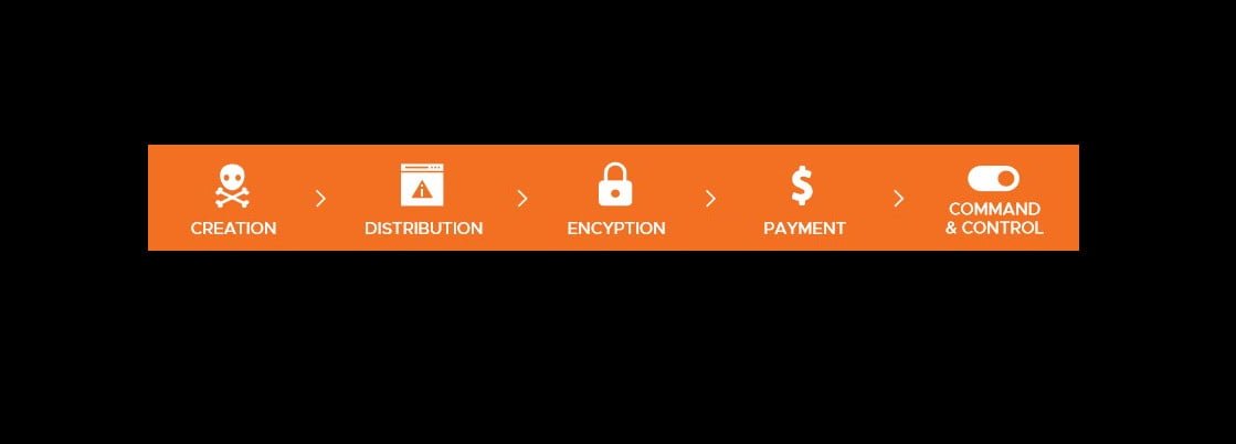 به طور کلی زنجیره ی ransomware را می توان به پنج ماژول مختلف تقسیم کرد: