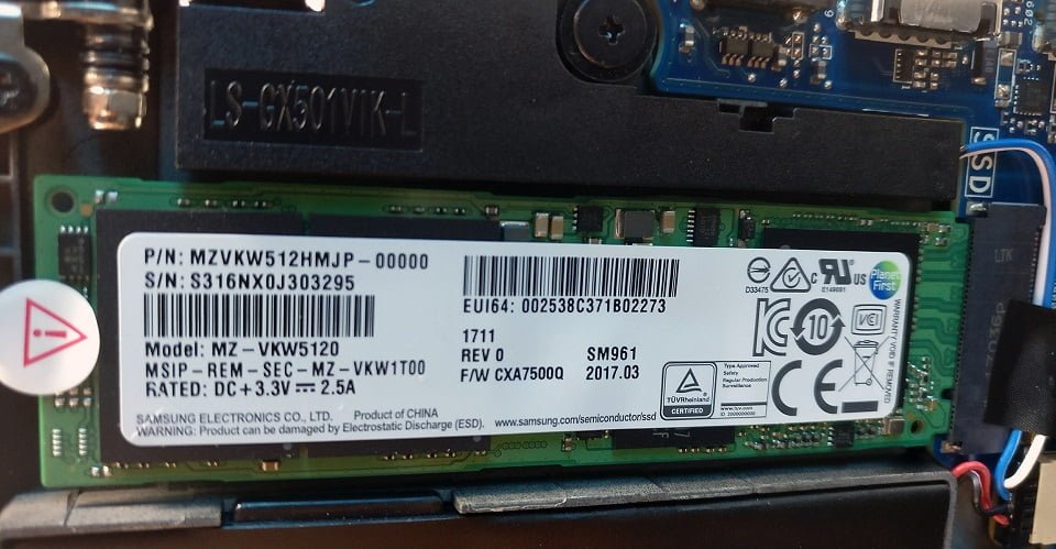 یک درایو سالید Samsung SM961 PCIe NVMe SSD با ظرفیت 512 گیگابایت، در این مدل به خدمت گرفته شده است. با توجه به ضخامت این مدل، تنها یک اسلات SSD M.2 را در اختیار خواهید داشت.