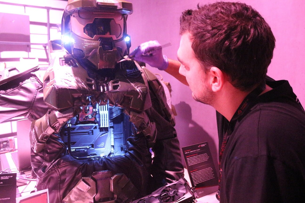 محصولات مخصوص بازی ROG برای جامعه  Modderها به خوبی شناخته شده هستند. در این بخش خواهید فهمید که چگونه بهترین مادِرهای جهان از محصولات ROG در اثرهای هنری شگفت‌انگیز خود استفاده می‌کنند. ROG همواره در مادینگ کیس نیز فعال و نوآور است و ما در غرفه ایسوس، دو نمونه از جدیدترین پروژه‌های خود را به نمایش گذاشته‌ایم. ROG Moto-Monster و Halo Master Chief جدیدترین نمونه‌های ما هستند و توسط مادِرهای معروفی همچون Wei Zheng چینی “مشهور به Ai-Mask” وStephen Hoad استرالیایی “مشهور به Oz Modz” ساخته شده‌اند. مادربردهای Strix Z270E Gaming  و  Maximus IX Formulaبه همراه کارت گرافیک‌های Strix GTX 1080Ti و Strix GTX 1080 و مانیتور ROG Swift PG348Q و ماوس مخصوص بازی ROG Pugio  در این بخش مورد توجه قرار گرفت.