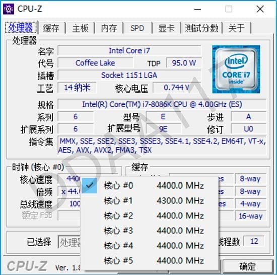 اینتل یک CPU پرچمدار و جدید با نام Intel Core i7 8086K را در دست تولید دارد که حتی نتایج مشخصات آن در CPU-Z و بایوس یک مادربرد پیشرفته MSI Z370 نیز منتشر شده است. این CPU دارای 6 هسته واقعی بوده و از نسل هشتم (CoffeeLake) است. فرکانس پایه در این محصول برابر با 4.0 گیگاهرتز بوده و توان حرارتی 95 وات را به همراه دارد.