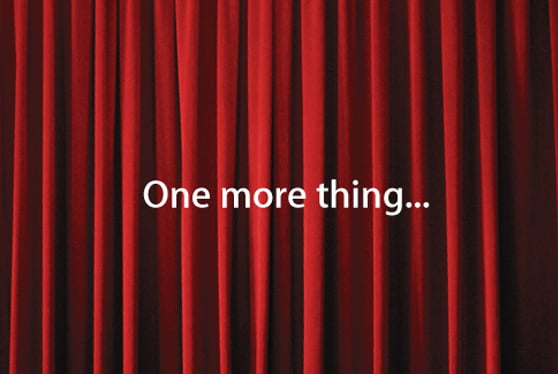 اکتبر 2005: اشتباه نکنید، این پرده های نمایش داده شده مربوط به هیچ صحنه تئاتری نمی شود! در واقع اپل با این تصویر به سالن سینما اشاره کرده و آنرا برای اولین بار در آیپاد راه اندازی کرد یعنی قابلیت پخش ویدئو در این دستگاه دوست داشتنی همزمان با فروش محصولات تصویری در فروشگاه آی تیون.