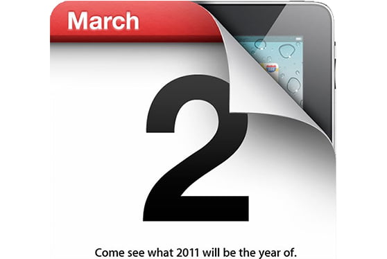 مارس 2011: در این سال اپل از ارائه نسخه جدید آیپد خبر داد. همانطورکه تاریخ ارائه محصول در بالای تصویر مشخص شده، عدد 2 و گوشه عکس نمایش داده شده به وضوح از نسخه جدید آیپد حکایت داشت.
