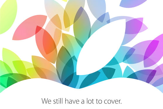 اکتبر 2013: پوشش (Cover) کلمه مرموزی بود که در تصاویر منتشر شده دیده می شد. اما مطمئنا اپل از یک پوشش هوشمند صحبت نمی کرد. با کمی دقت در معنی لغت به لغت این عبارت اینگونه برداشت می شد که اپل آن سال حرف های زیادی برای گفتن داشت. لابه لای این حرف ها، آیپد ایر و آیپد مینی با صفحه نمایش رتینا خود نمایی کردند.