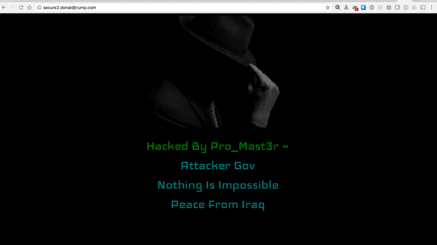 هکری به نام”Pro_Mast3r” ادعا میکند که اهل عراق است و مسئولیت از بین بردن وب سایت رئیس جمهور آمریکا، دونالد ترامپ را به عهده گرفت. این وب سایت به طور مستقیم به کمپین انتخاباتی ترامپ متصل نیست؛ بلکه بر روی سرور secure2.donaldjtrump.com قرار دارد و با سیستم امنیتی Cloudflare، مدیریت میشود. در حالی که این سرور، یک سرور با گواهینامه ی رسمی است ولی همانطور که در تصویر میبینیم؛ ظاهراً به سایت دیگری متصل شده و متن “هیچ چیز غیر ممکن نیست” روی آن نوشته شده است.