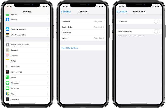 برای غیر فعال کردن این گزینه  ابتدا  تنظیمات را باز کرده و سپس مسیر Contacts > Short Name را دنبال کنید.