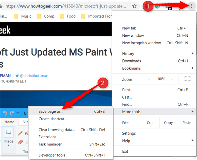 برای شروع قطعا باید ابتدا وارد مرورگر کروم شوید و صفحه وب مورد نظرتان را باز کنید. برای ذخیره سازی این صفحه وب باید بر روی دکمه سه نقطه که کلید منو است کلیک نمایید و سپس بر روی More tools کلیک کنید. در نهایت در منوی جدید باز شده گزینه Save page as را انتخاب نمایید. همچنین می توانید از کلید Ctrl + S نیز استفاده کنید.